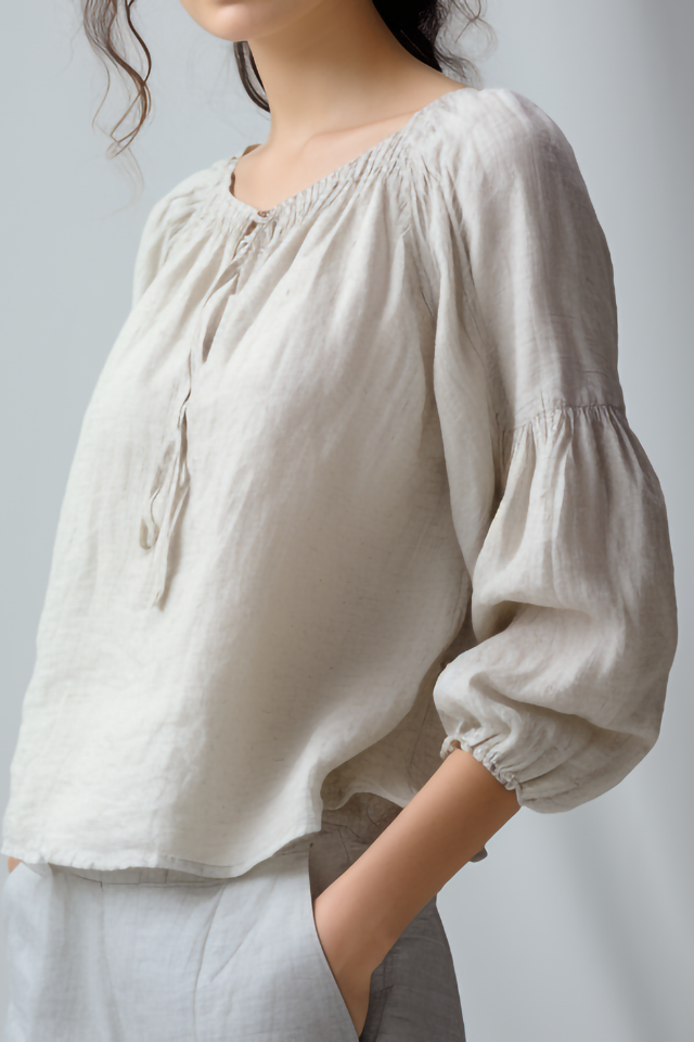 Primrose Strik Hals Linnen Blouse